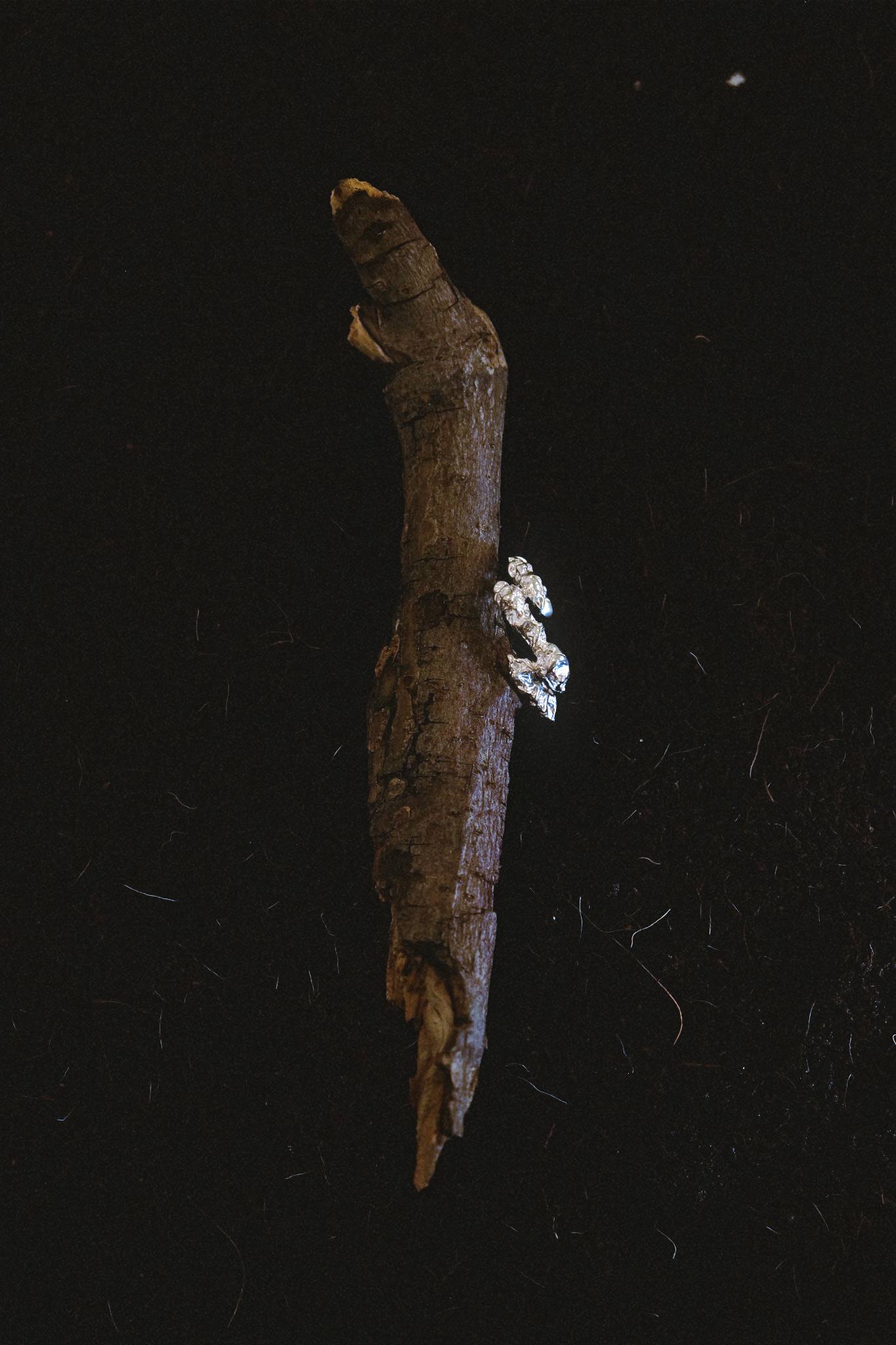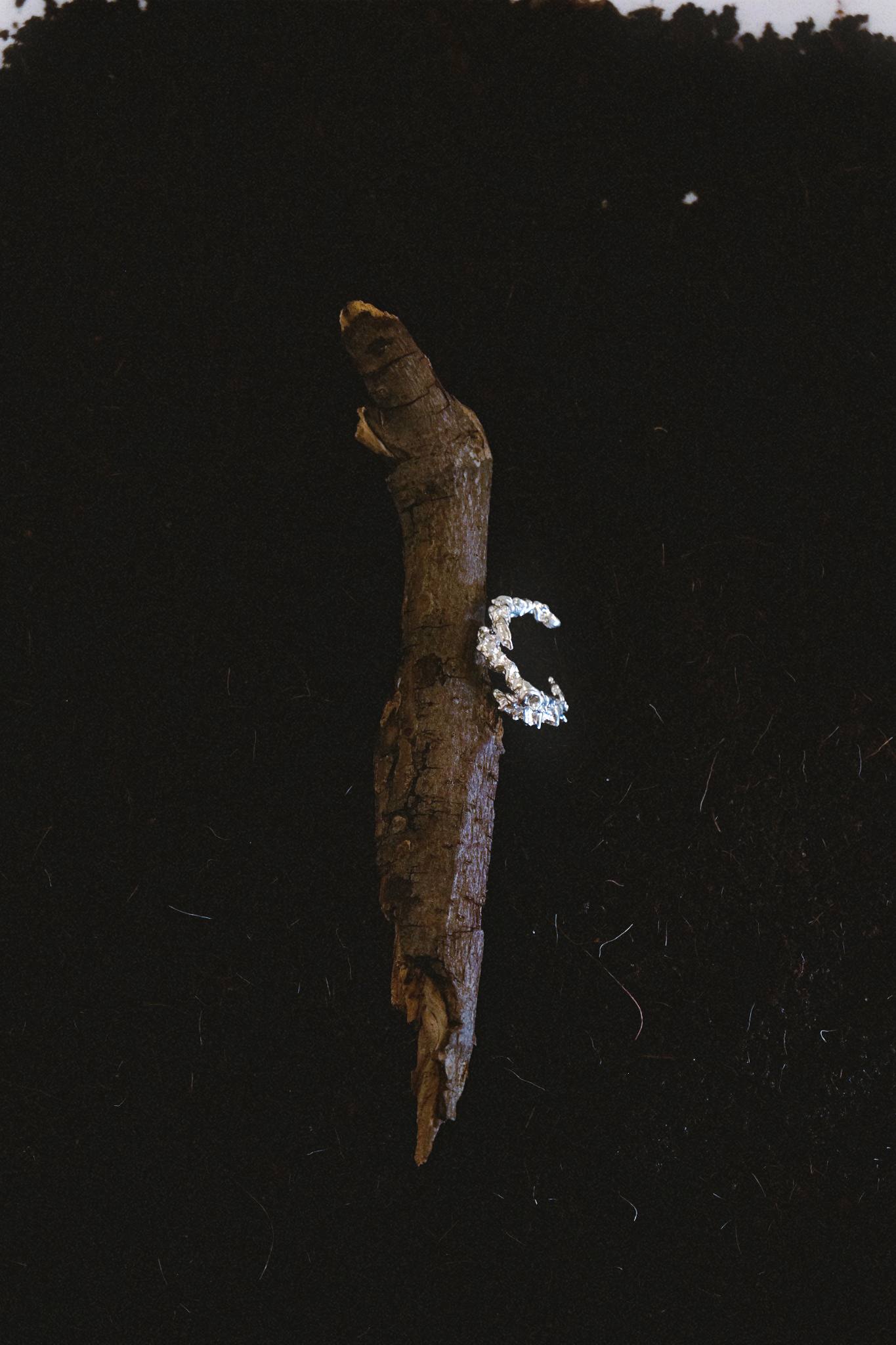 The texture is inspired by seeds and branches observed in Seven Kings Park, London. Subtle natural details translated into metal.