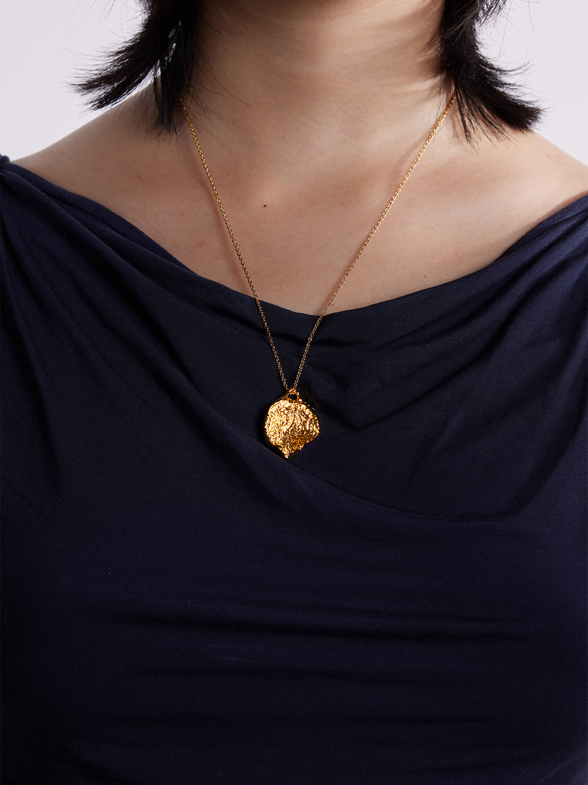Shaped from the uneven outline of ginger, this large disc necklace celebrates natural asymmetry and tactile texture.
