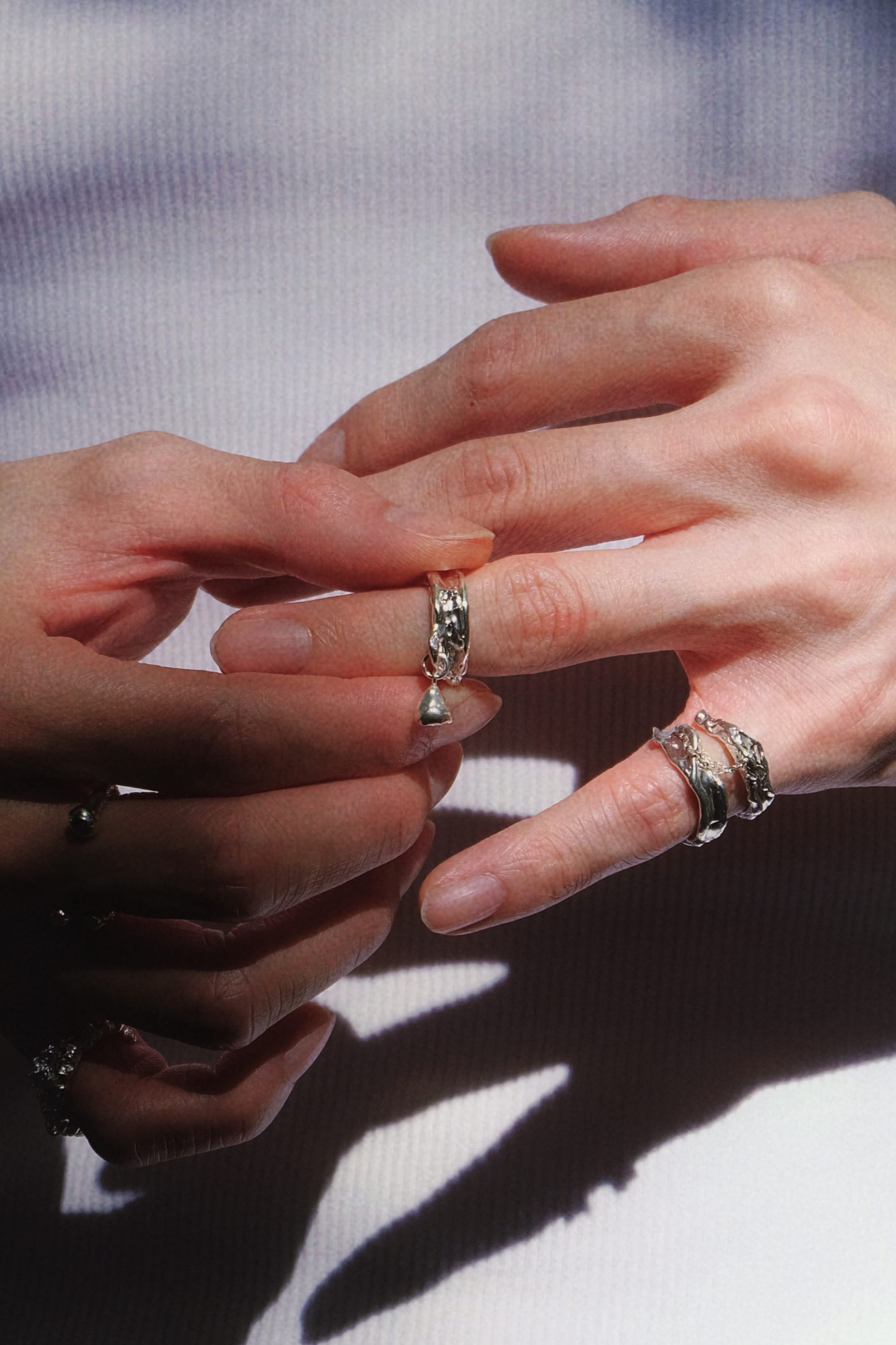The texture is inspired by seeds and branches observed in Seven Kings Park, London. Subtle natural details translated into metal.