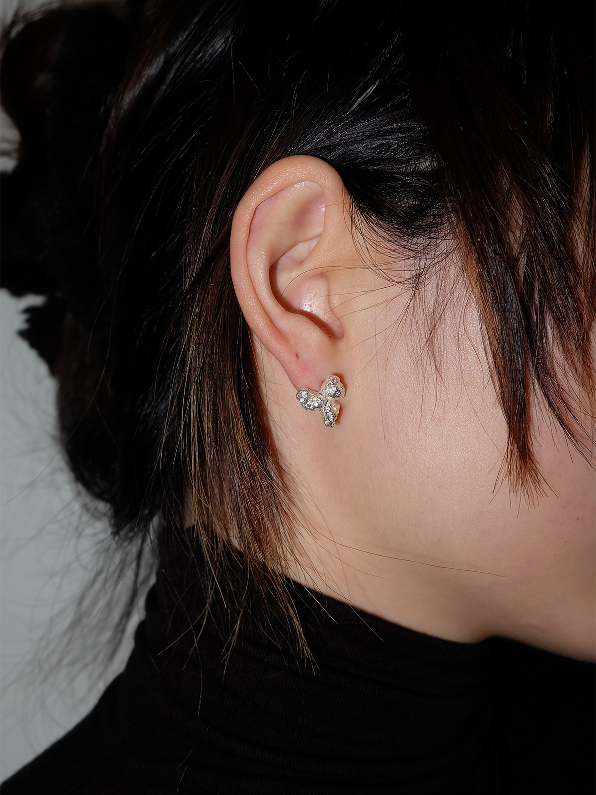 Each earring mirrors the compact density of volcanic stone, small in scale yet rich in surface detail.