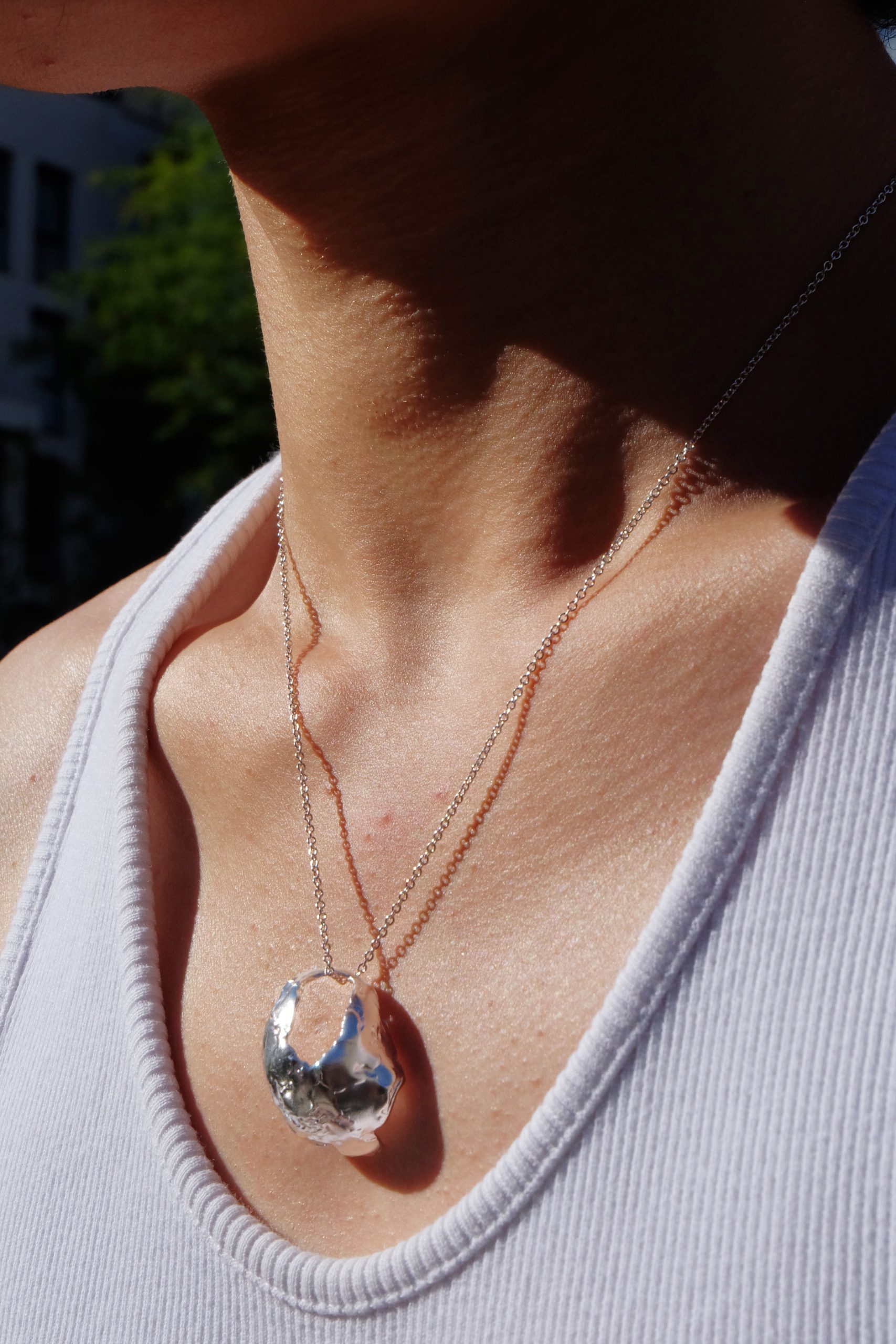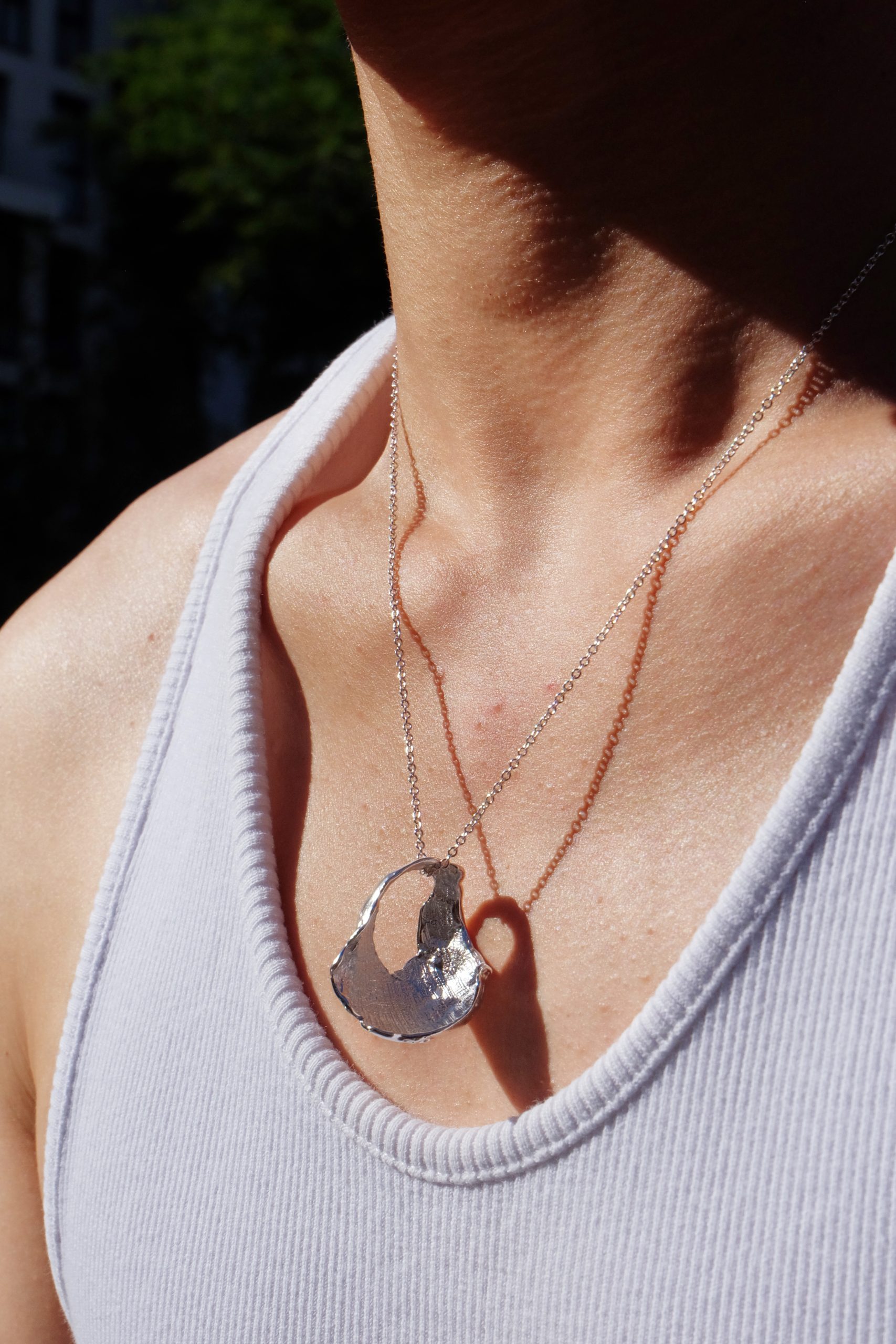 A sculptural pendant inspired by hollow shells carved open by the sea.